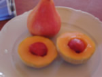 I garden, therefore I am. I love gardening. I have a challenging gardening situation on my land, which was once forest on top of the first ridge from the ocean in southern Mendocino county. The trees were cut, the land eroded, so the soil is thin at best. Most of my lot is being restored to redwoods and other native plants, but I have an area for fruit trees and vegetables. I have struggled with the weather here. Winters, from about December to about April, are characterized by heavy rains, lows in the 40's, and highs in the 50's, but some times we get a dry stretch and we get some frosts, plus usually one freeze per year. The freeze means many tropical plants can survive only in greenhouses. Usually there is enough chill to set apples and pears, but not always. Summers are dry and may have hot days or spells, but we get a lot of coastal "fog" which is usually cloud cover. Heat loving plants may not grow well or set fruit. So in the spring I grow cool weather crops like snow peas, potatoes, and lettuce. Growing melons and squash is a problem. As usual I have neighbors with better soil or different microclimates that do better. I am at about 1100 feet above sea level. Go towards the ocean and down even 400 feet and you can avoid the winter freezes. Go inland and down a bit and it is much, much warmer. A two miles further inland it may be 20 or even 30 degrees warmer than it gets at my house. I have harvested a few zucchini in several attempts the last few years, but not the kind of overwhelming crops others get. This year I decided to try something different. I planted Delicata squash, Babylon Cucumbers, and Fastbreak Cantaloupe. I thought the cantaloupe was the chanciest choice, but I was wrong. I have all of one Delicata squash despite having 6 healthy plants. Mostly I got male flowers, and most female flowers did not develop. This summer was the coolest summer I can remember, with highs in the low 70's most of the summer. Usually we have occasional spells of 3 to 5 days of weather in the 80's or even 90's, which lets squash set. The cucumbers just did not do well at all. Only two plants survived and they were stunted. They were in an area where I have not improved the soil as very much, but that was true of the cantaloupes to. Here are some pictures of my cantaloupes (with a Rescue pear and strawberries):